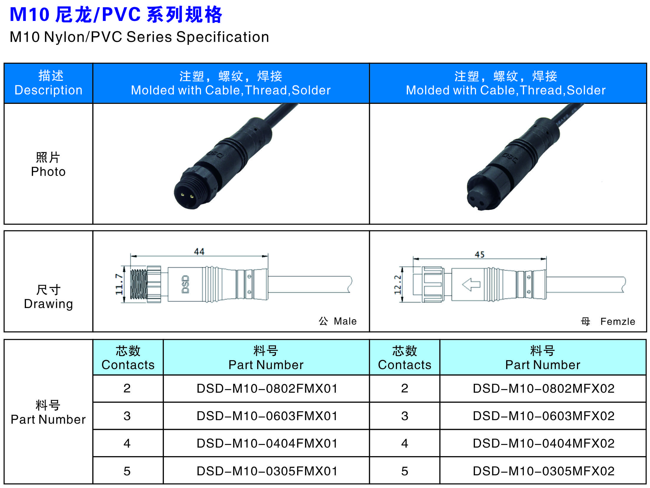 芯數(Contacts  Number):   2 - 5 芯