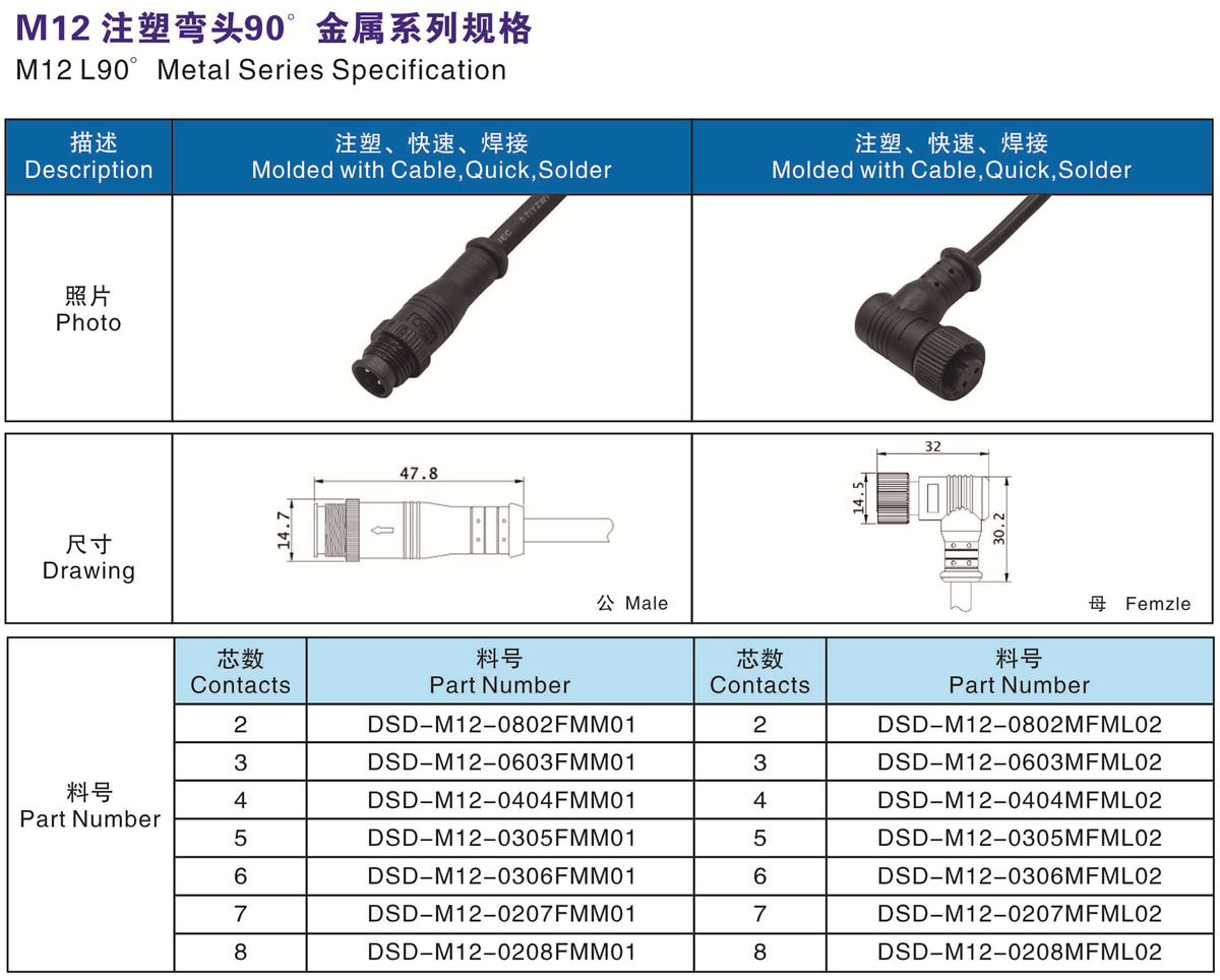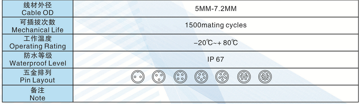 芯數(shù)(Contacts Number): 2 - 8芯